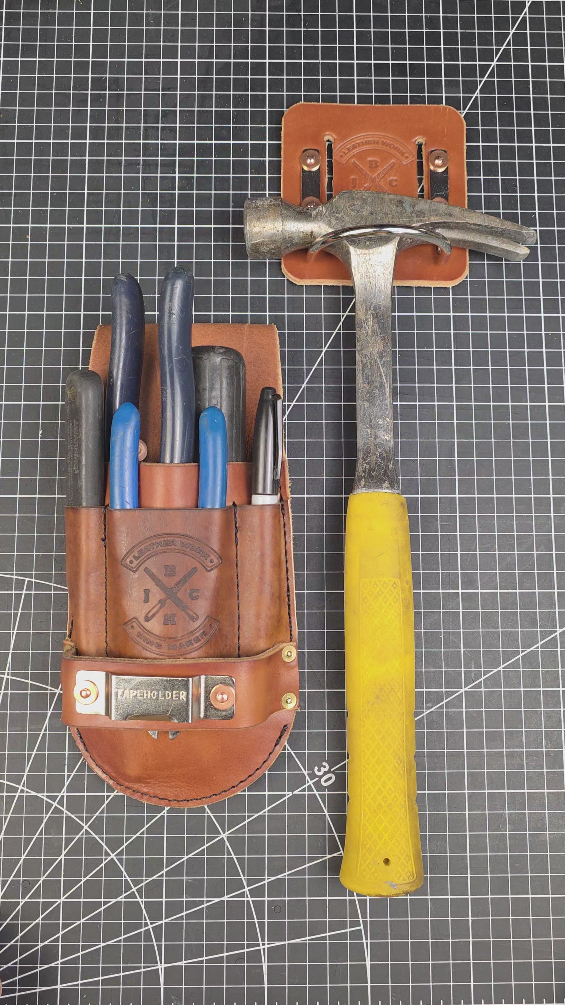 Built for the doers, whether you're swinging a hammer on a job site, wiring up a panel, or fixing things around the house. This compact tool pouch is made from thick 9–10 oz. leather and reinforced with solid brass and copper rivets at all stress points. It’s tough, dependable, and ready to keep your essentials right where you need them.