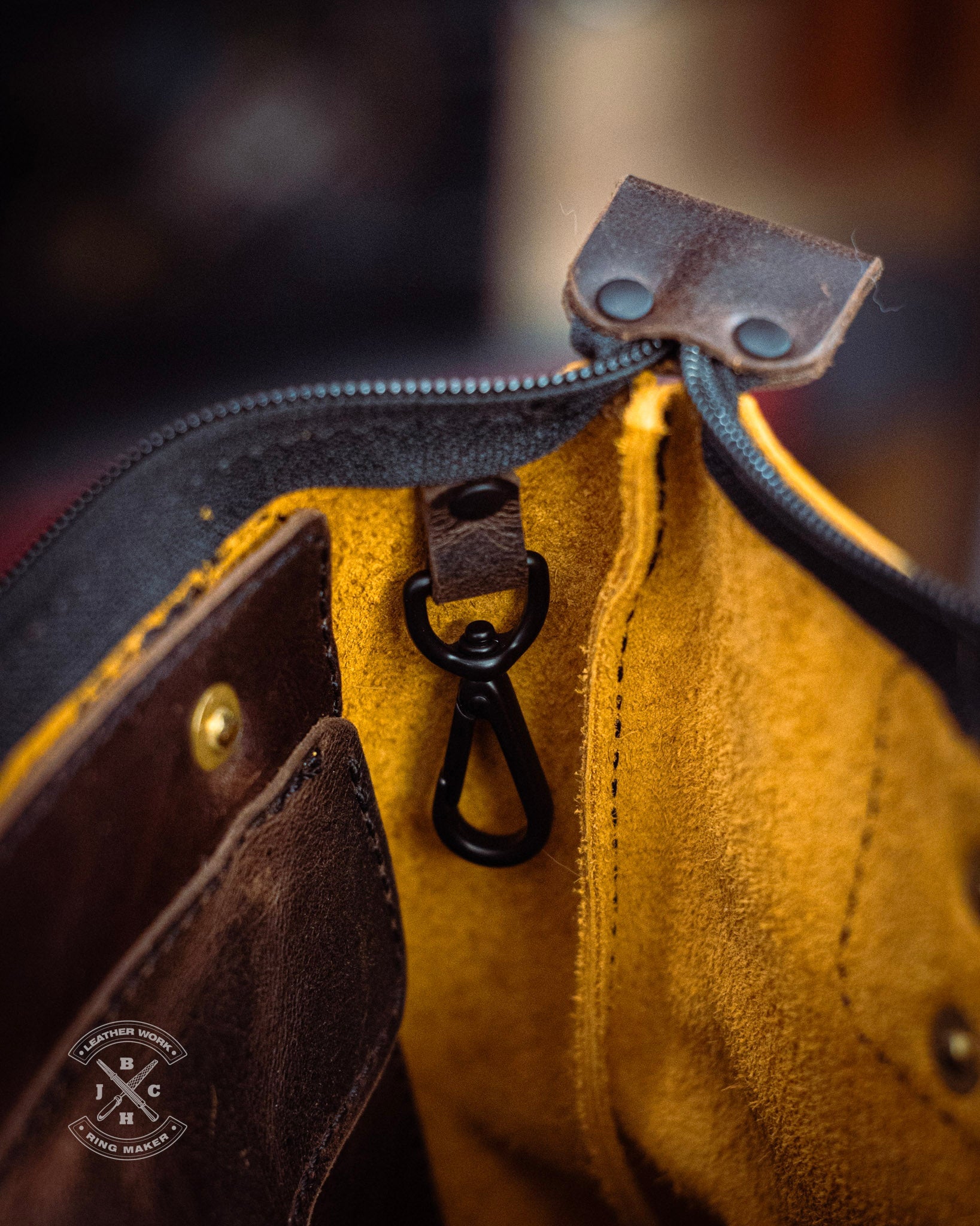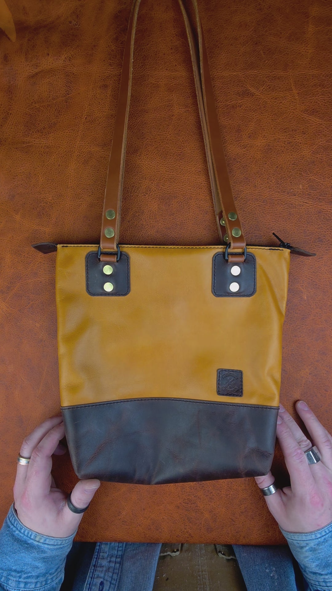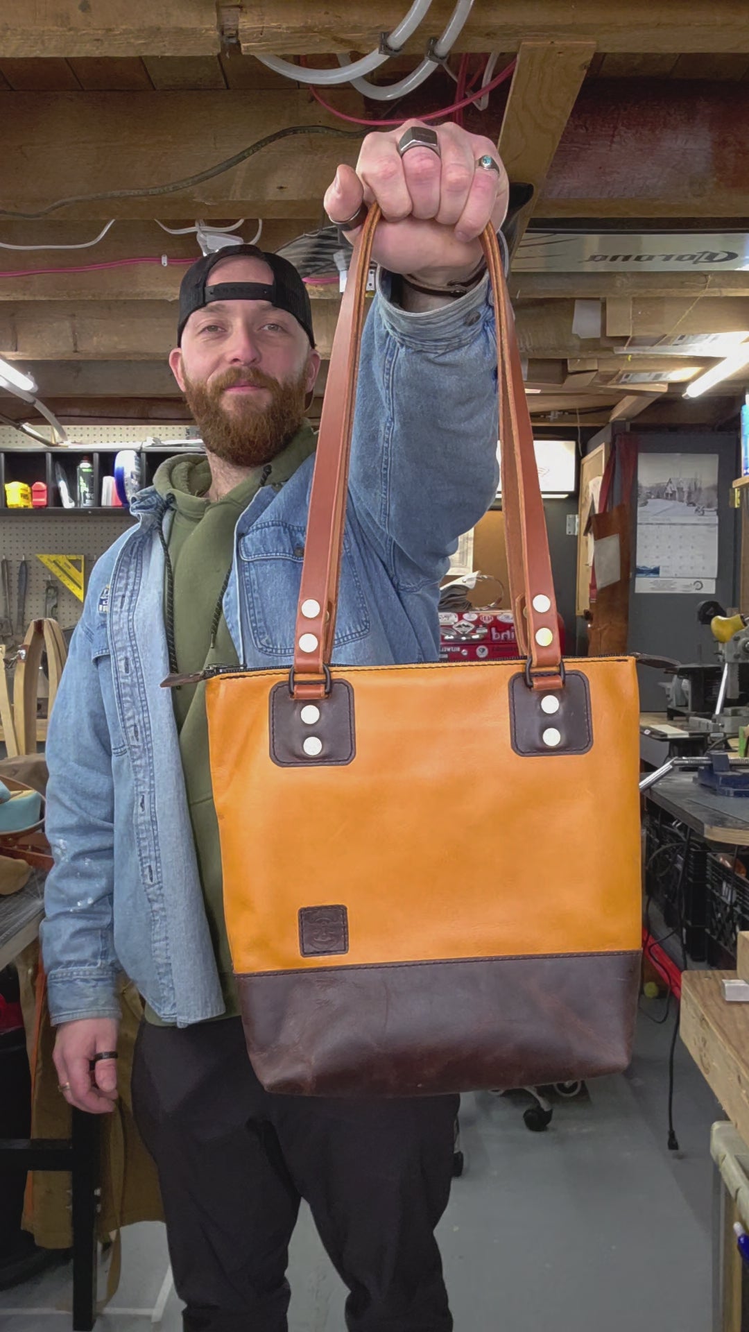 Made from two veg-tan* leathers, including Richard Hoffman's, this tote has a zipper closure, an interior key clip, and a large inside pocket for your phone, wallet, or documents. The structure is simple, and the finish is clean.