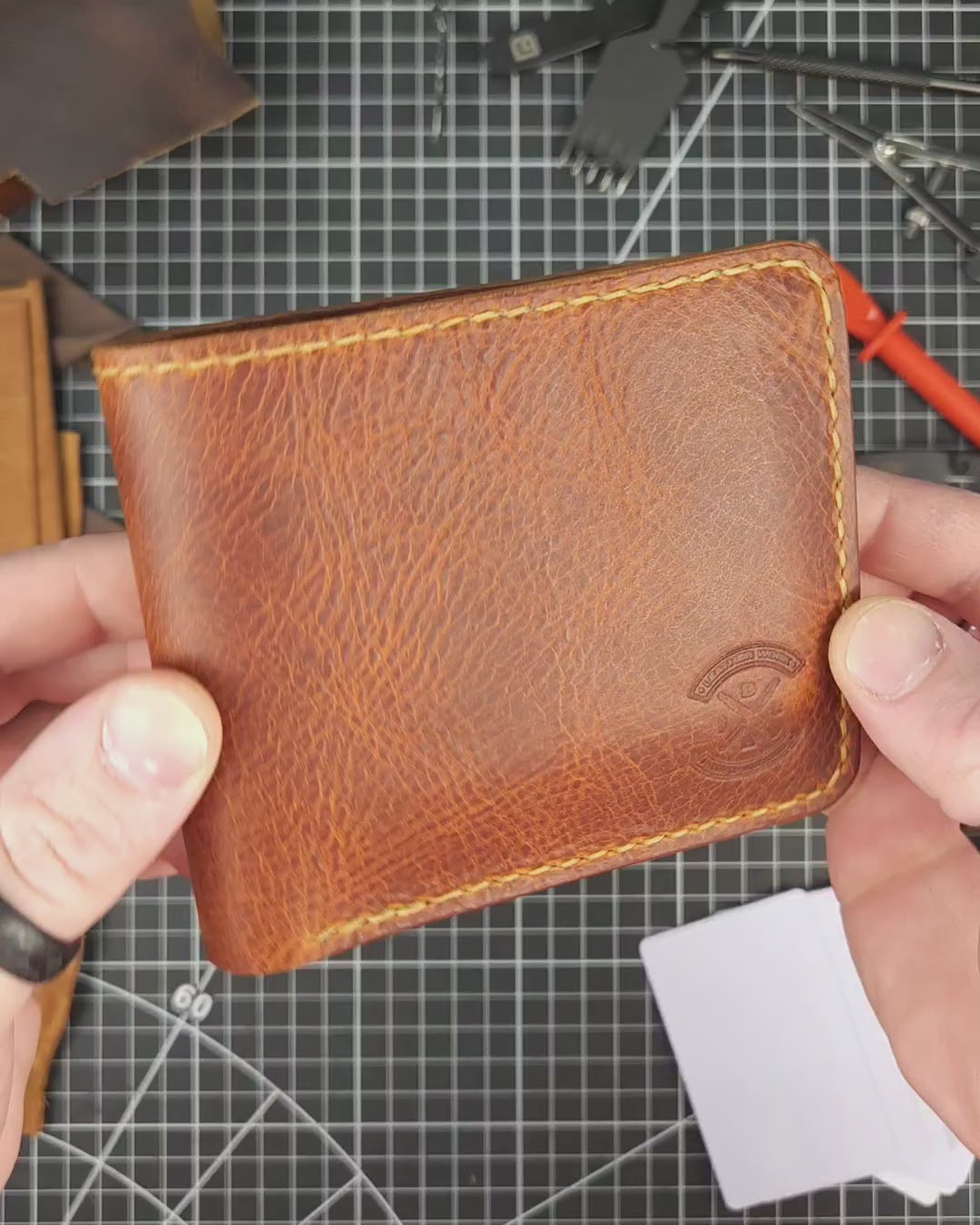 A classic bifold with a bold look. Designed for practicality, it features six card slots, two hidden pockets, and a spacious cash compartment. Built to last and hand-stitched with precision.