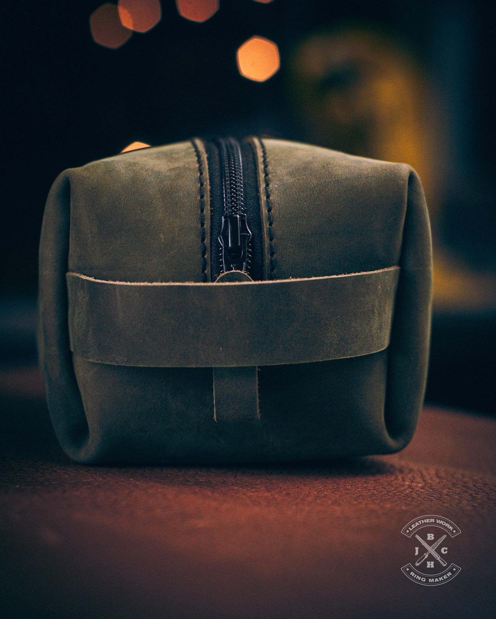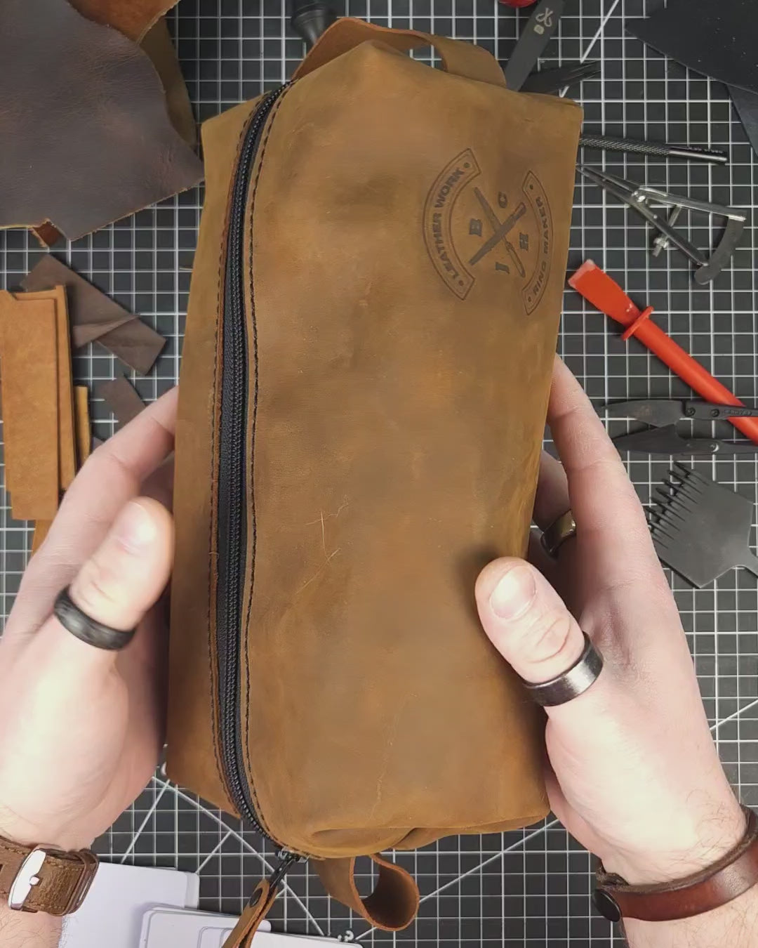 A spacious and rugged travel essential. Made from Crazy Horse leather, it features a durable YKK zipper, a sturdy leather handle, and a loop for hanging. Designed with extra room to fit all your toiletries, making it perfect for travel or everyday use.